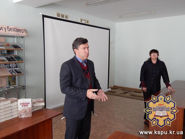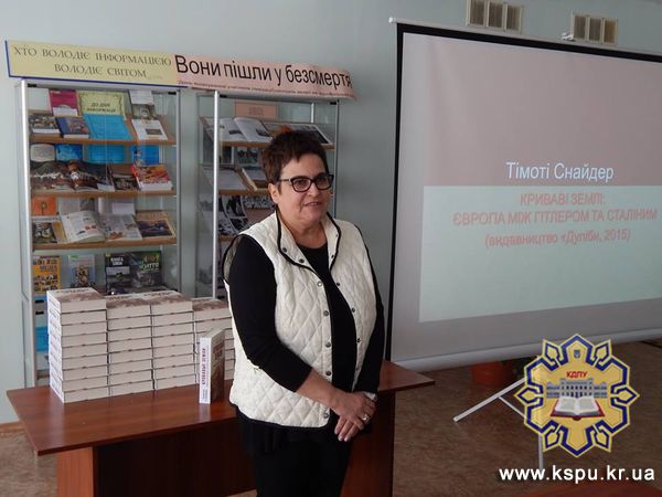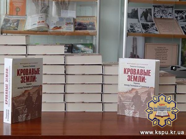 8 грудня 2016 року в читальному залі Наукової бібліотеки Кіровоградського державного педагогічного університету імені Володимира Винниченка відбулась презентація історичного бестселера «Криваві землі: Європа між Гітлером і Сталіним» (Bloodlands: Europe Between Hitler and Stalin). Автором книги є відомий дослідник історії Східної Європи, професор Єльського університету, один з кращих експертів з історії України на Заході – Тімоті Снайдер (Timothy David Snyder). Ця робота була видана 30 разів 27-ма мовами світу, є лауреатом кількох премій, була названа «виданням року» за версіями 12 літературних списків. Основне завдання, яке перед собою ставив дослідник – не порівняти тоталітарні режими СРСР та Німеччини, а показати їх співпрацю протягом 1930-х років. Також автор у своїй роботі намагається з’ясувати вплив на долі пересічних людей найдраматичніших сторінок в історії Світу (голодомор, класовий та національний терор, холокост та ін.).