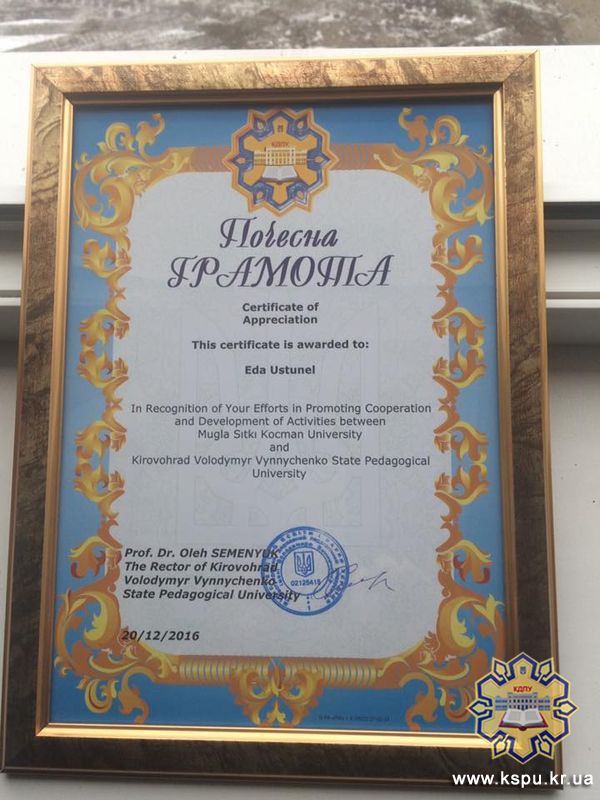 Ректор КДПУ ім. В. Винниченка Олег Анатолійович Семенюк висловив подяку іноземним друзям та подарував декілька сувенірів на згадку. Також, проректор з наукової роботи, доктор філологічних наук, проректор Сергій Павлович Михида нагородив Почесною грамотою та подякою за розвиток співробітництва та визнання між університетами.