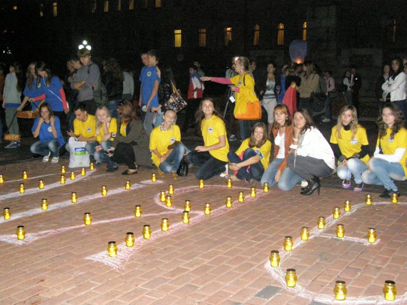 26 вересня на центральній площі нашого міста була проведена благодійна акція на підтримку онкохворих дітей «Надія є!», в якій більше 30 студентів факультету іноземних мов виступили у ролі волонтерів. У програмі заходу був збір матеріалів та коштів для арттерапії, а також запуск «китайських ліхтариків». За традицією у ці ліхтарики люди вкладають листочки зі своїми бажаннями, та цього разу ми посилали в небо ліхтарики, які містили в собі листочки з мріями діточок, що перебувають на лікування у онкологічному відділенні дитячої обласної лікарні.