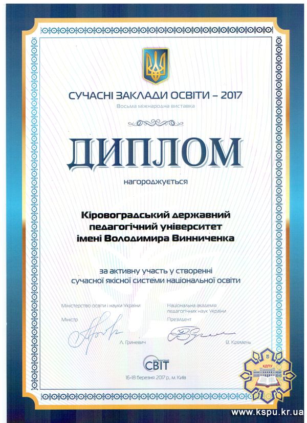 ВИСТАВКА «СУЧАСНІ ЗАКЛАДИ ОСВІТИ – 2017»: ЗДОБУТКИ ТА НАГОРОДИ КДПУ