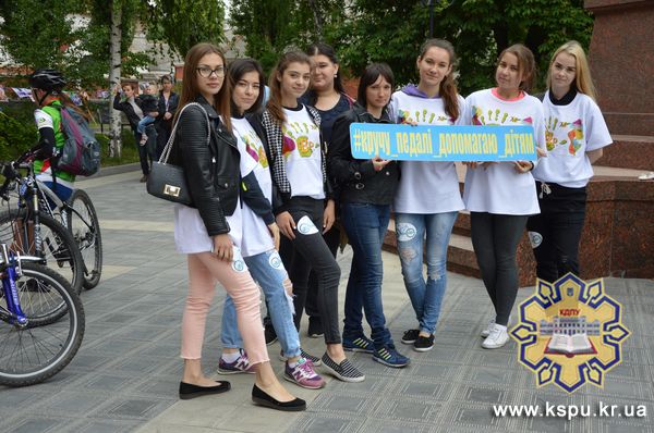 Нещодавно, 27 травня, ректорат, викладачі та студентство Центральноукраїнського державного педагогічного університету імені Володимира Винниченка, зібралися на площі В. Винниченка, щоб долучитися до щорічного святкування «Велодня». Організатори – студентський волонтерський рух, який з`явився на факультеті педагогіки та психології, а саме на кафедрі соціальної роботи, соціальної педагогіки та психології. Дівчата кажуть, що зробили велопробіг благодійним, аби допомогти коштами діткам із центру соціальної реабілітації дітей-інвалідів.