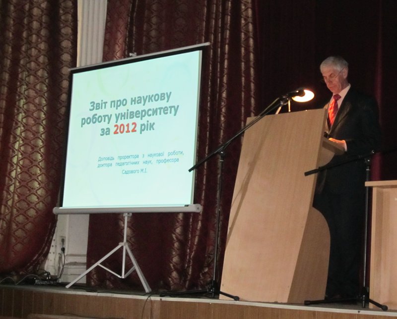 Проректор з наукової роботи, професор М.І. Садовий підвів підсумки науково-дослідної роботи професорсько-викладацького складу університету за 2012 рік.