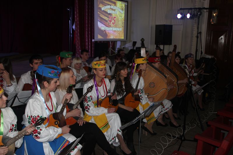 Кульмінацією свята став феєричний концерт, який відбувся в актовій залі університету. Приємно, що концерт відвідали не лише люди, які сьогодні своїми творчими силами, життєвою енергією, ентузіазмом розбудовують факультет, а й гості з інших факультетів, колишні випускники, колеги. Бо сорокап’ятиріччя – то довгий життєвий період, під час якого зароджувалися нові музичні династії, виростали, як квіти, творчі здобутки, формувалася справжня школа викладачів. То – безмежний відрізок часу, у якому сплелися докупи перемоги й поразки, перші наївні кроки, бурхливе студентське життя, численні невивчені пари, пізнавальні лекції, підготовки до «Вернісажів талантів» і різноманітних розважальних заходів.