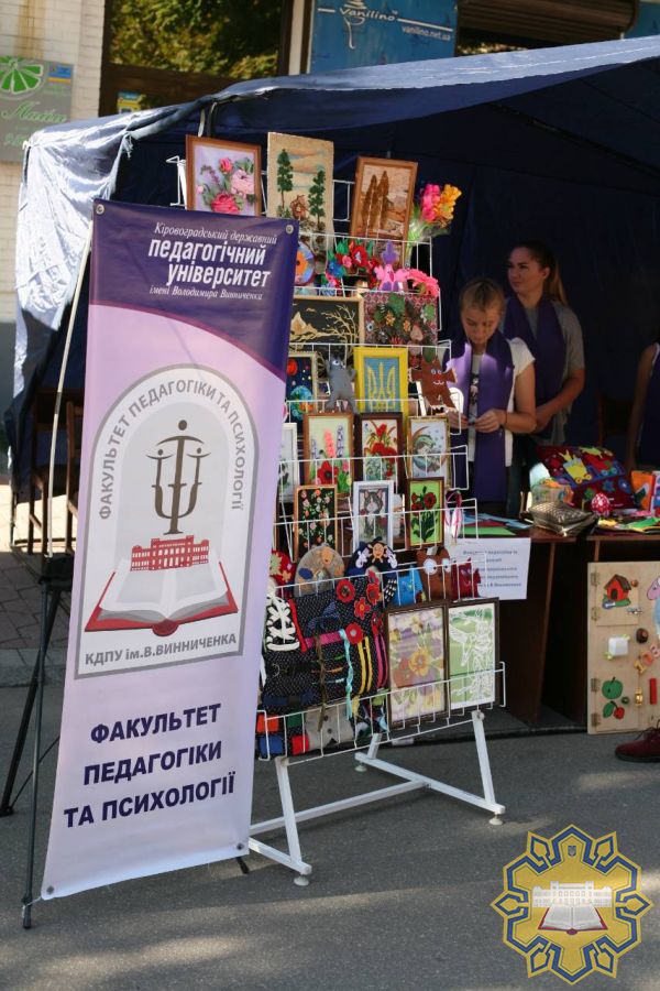 Студенти Центральноукраїнського державного педагогічного університету імені Володимира Винниченка представили мистецьку програму та стендові презентації від факультету педагогіки та психології. В рамках цієї програми студентка ІІІ курсу Марина Матусова та студентка ІV курсу Лілія Тітенко вітали гостей своїми піснями. Студенти другого та третього курсу Нінель Чижова, Аліна Рачкован, Діана Шипокіна, Юлія Гаваза та Святослав Генник виконали чудовий танць із прапорами. Та найцікавішою частиною став флешмоб від студенток третього курсу Нінель Чижової, Аліни Рачкован та студентки другого курсу Юлії Гавази, у якому могли взяти участь усі бажаючі. Працювала виставка творчих робіт від студентів четвертого курсу. А майбутні психологи у рамках свята підготували різноманітні цікаві завдання для гостей заходу.