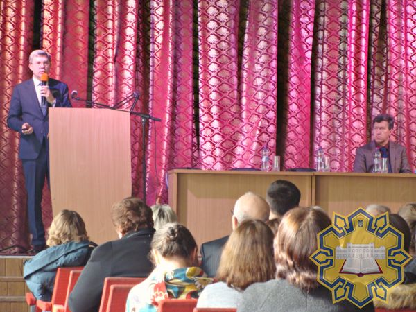 Далі підсумки науково-дослідної роботи професорсько-викладацького складу університету за 2018 рік підбив проректор з наукової роботи, професор Сергій Михида. Основними питаннями, висвітленими в доповіді, були: забезпечення науково-педагогічними кадрами факультетів, захист кандидатських і докторських дисертацій, робота аспірантури й докторантури, проведення наукових конференцій, публікації викладачів університету, міжнародна діяльність, наукова робота студентів. Окрім підсумків, Сергій Павлович виголосив і завдання щодо наукової роботи на 2019 рік.