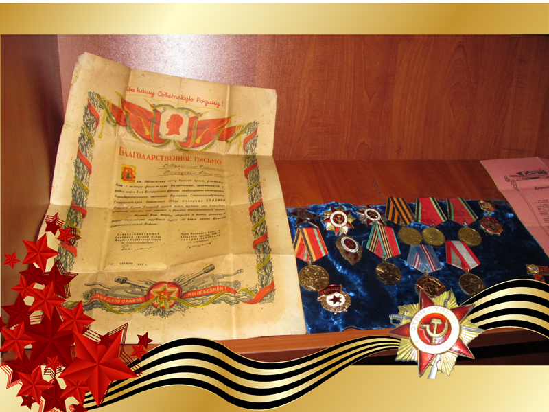 Особливої уваги виставки бібліотеки природничо-географічного факультету “Хай лунає салют Перемоги” заслуговують нагороди старшого сержанта Сорокового І.А., вдячний лист маршала К. Рокосовського, посвідчення за участь в героїчній обороні Кавказу, червоноармійська книжка, військовий квиток.