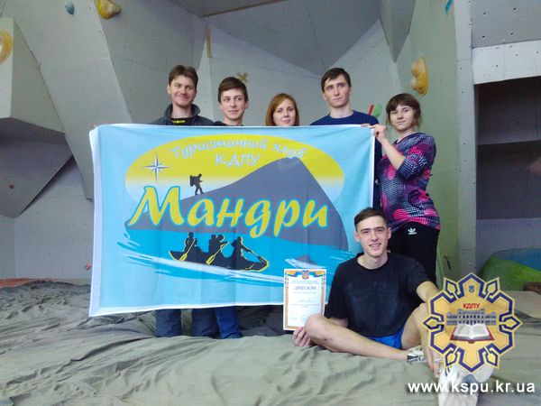 З 17 по 19 лютого 2017 року в м. Кривий Ріг відбувся Чемпіонат України зі скелелазіння (болдерінг – лазіння на складність) серед студентів, який входить у програму фінальних змагань ХІІІ літньої Універсіади України 2017 року. Наш університет на цих змаганнях представляла молода команда туристичного клубу «Мандри». У складі команди лише студенти-географи природничо-географічного факультету: другокурсники – Німеровський Максим, Назаренко Данило, Пальчиков Віктор, Рощик Тетяна та першокурсники – Троцький Максим та Александрова Вікторія.