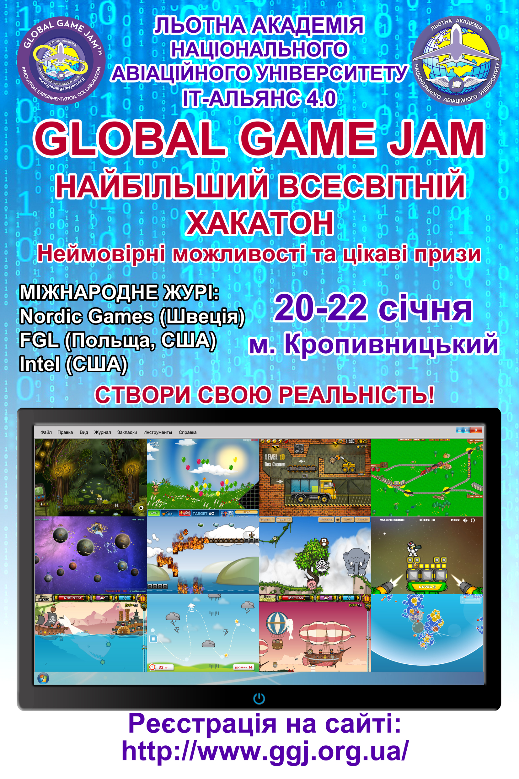 Другий рік поспіль у місті Кропивницькому відбувається міжнародний хакатон під назвою “ Global Game Jam “. Співорганізатор заходу Кіровоградський державний педагогічний університет імені Володимира Винниченка запрошує долучитися до розробки комп`ютерних ігор.