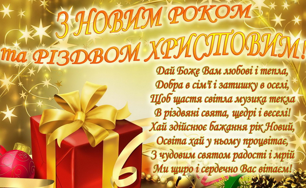 Вітаю Вас з наступаючим Новим роком. Новий рік – свято чарівництва, всіма улюблений і очікуваний. Він завжди несе в собі надію на краще, сподівання на добрі зміни. Безсумнівно, минулий рік приніс багато радісних змін, але так само були і прикрощі. Тому не варто забувати про те, щоб не відбулося в минулому році – воно вже пройшло, і Новий Рік хороший привід і можливість почати спочатку. І нехай з Новим Роком супроводжує тільки нове, свіже, радісне. Я щиро бажаю всім нам, традиційно, здоров'я, успіхів, гідних партнерів, грошових операцій та високої працездатності. Підбадьорите втомлених, посміхніться тим, хто самотній — і життя сторицею віддячить вам за вашу турботу.