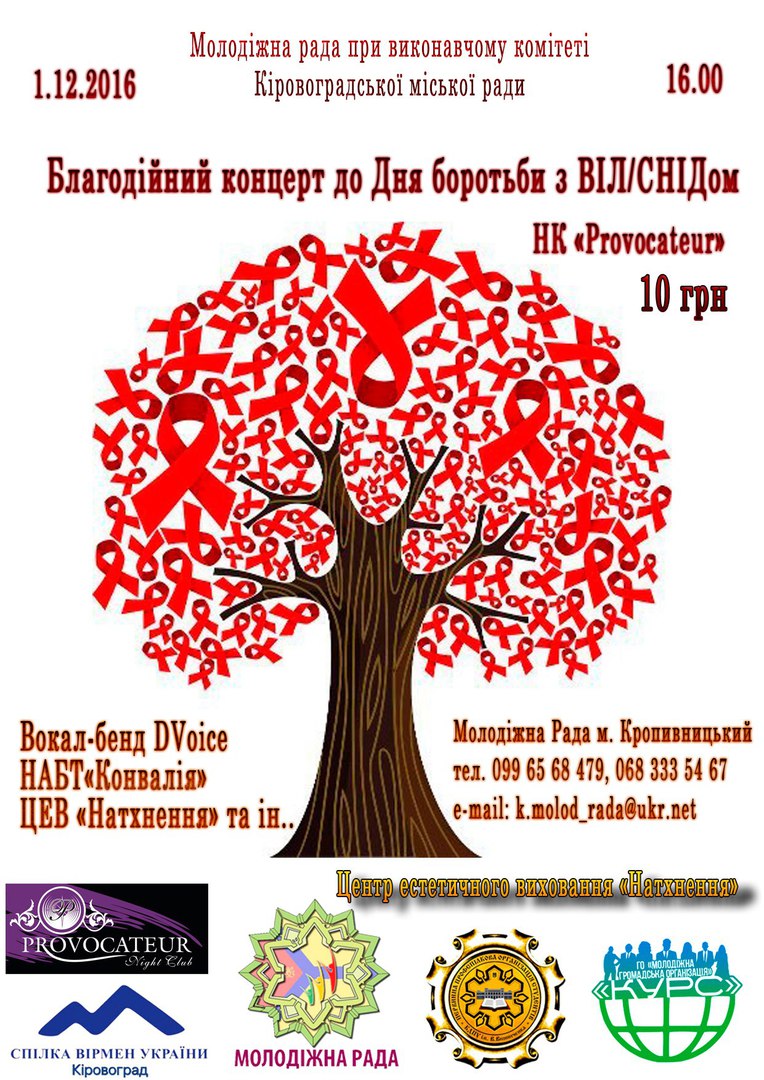 1 грудня 2016 року о 16:00 в НК «Provocateur» відбудеться благодійний концерт до Всесвітнього дня боротьби зі СНІДом, метою якого є збір коштів для допомоги людям з цією хворобою.