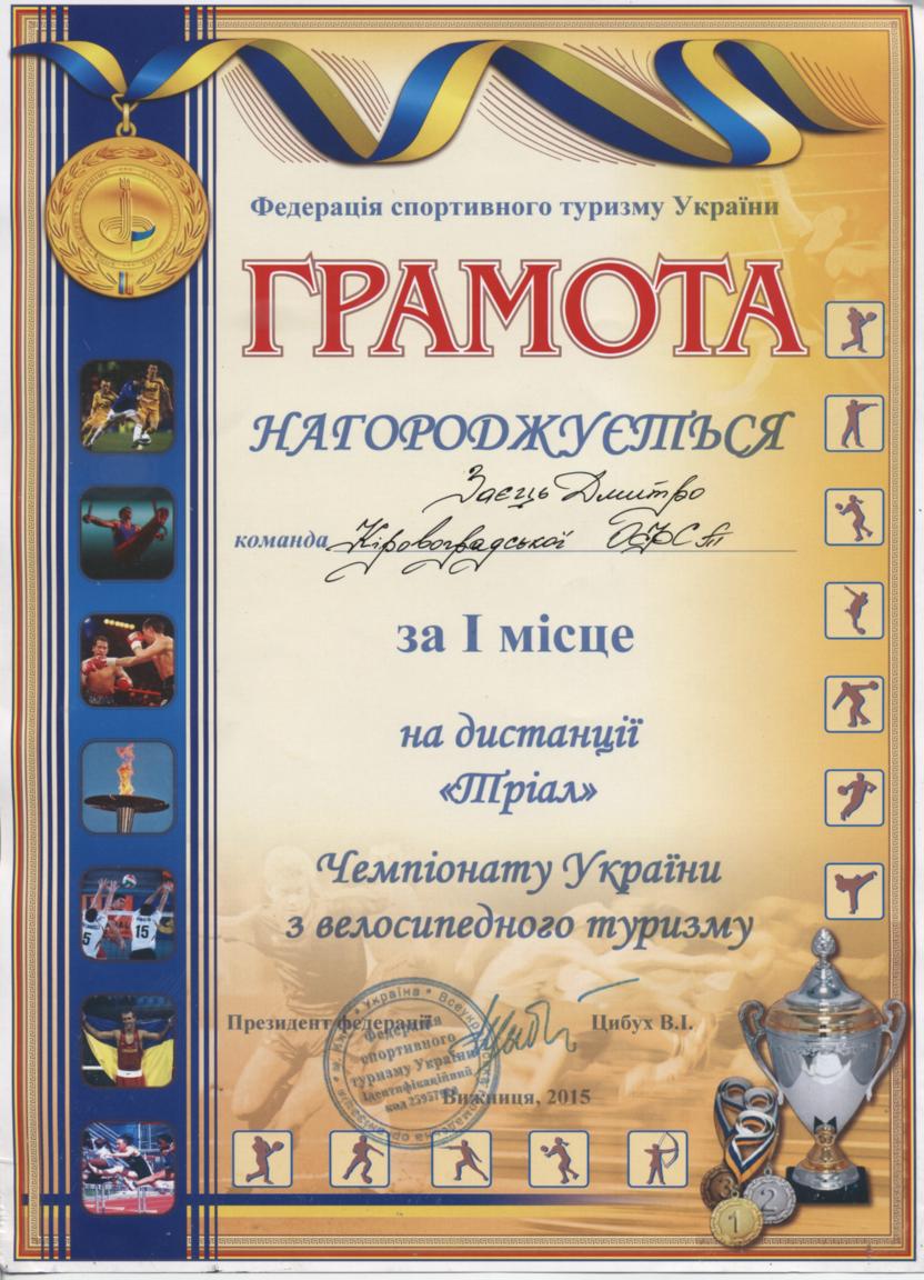 На початку жовтня у містечку Вижниця Чернівецької області відбувся Чемпіонат України з велосипедного туризму. Збірна команда Кіровоградської області, складена з кіровоградців та знам'янчан у підсумку посіла п'яте загальнокомандне місце.