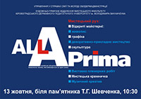 13 жовтня біля пам’ятника Тарасу Шевченку відбувся Мистецький рух «ALLA-PRIMA», який традиційно дев’ятий рік поспіль у «День художника» проводять викладачі та студенти художньо-графічного відділення мистецького факультету, Кіровоградського державного педагогічного університету імені Володимира Винниченка. Його організаторами стали декан мистецького факультету – Бабенко Л. В., завідувач секцією образотворчого мистецтва та дизайну – Гарбузенко Л. В. та доцент кафедри – Стрітьєвич Т. М.