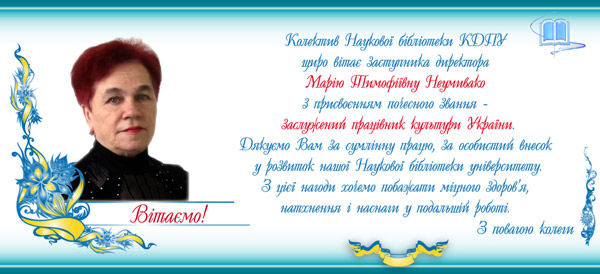 Щиро здоровлю Вас із професійним святом! День працівників освіти недаремно осяяний осіннім різнобарв’ям: багрянцем листя, вогнецвітом калини, багатим золотом вже скошених ланів. Щиросердно зичу і Вам розмаїття щасливих миттєвостей життя, міцного здоров’я, вагомих здобутків у науці, вдячних студентів, а майбутнім педагогам – високих результатів у навчанні, збереження доброї слави alma mater.