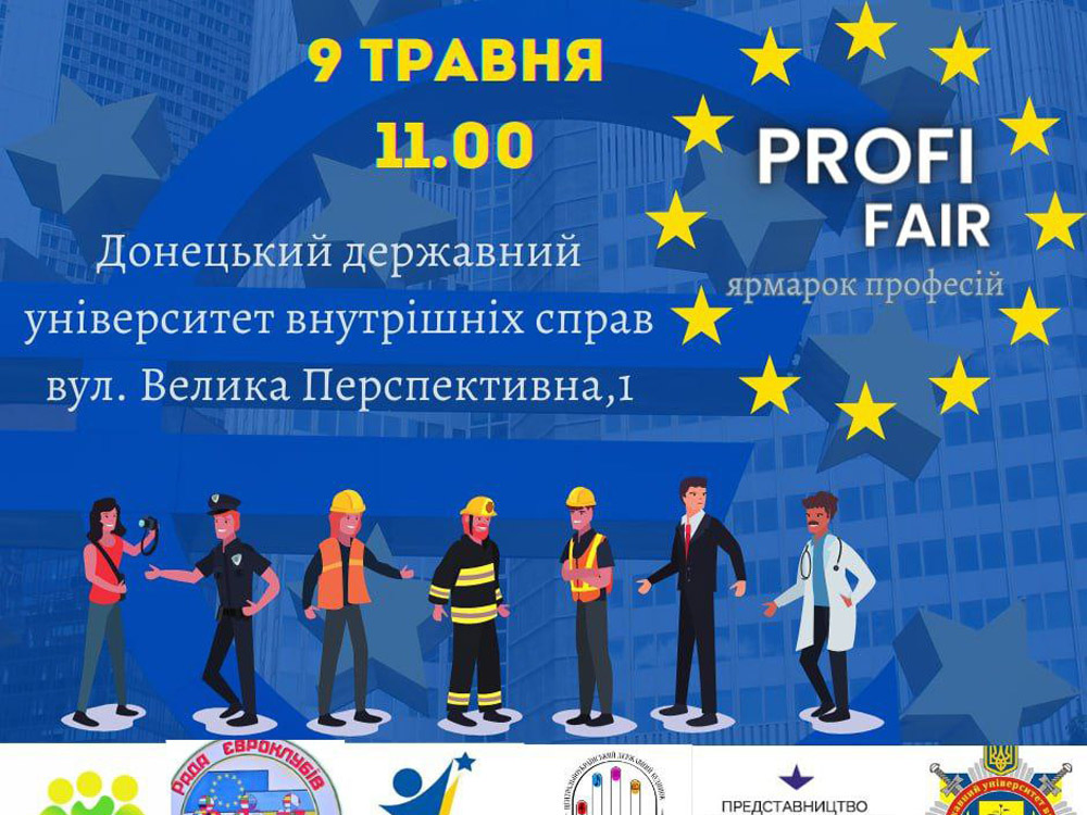 Сьогодні, 9 травня, у рамках святкування Дня Європи в Україні пройшов ярмарок професій ProfiFair. Співорганізаторами заходу виступили Донецький державний університет внутрішніх справ, Центральноукраїнський державний університет імені Володимира Винниченка та Центральноукраїнський державний будинок художньої та технічної творчості, за сприяння Представництва Євросоюзу в Україні.