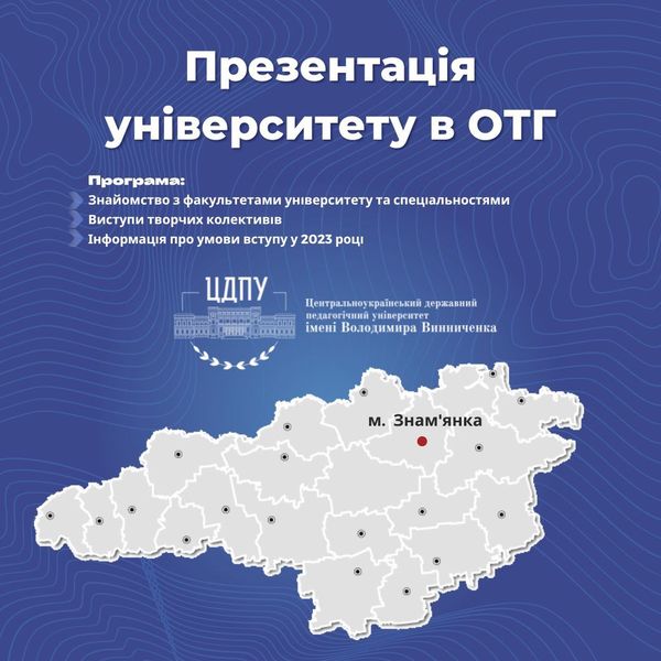 Заходи у громадах це не лише знайомства з абітурієнтами, а й зустрічі з нашими випускниками, які гідно несуть ім'я університету. Підтвердження цьому — День університету в Знам'янці, який відбувся у теплій атмосфері на базі Центру дитячої та юнацької творчості, у залі якого зібралося понад 150 школярів.