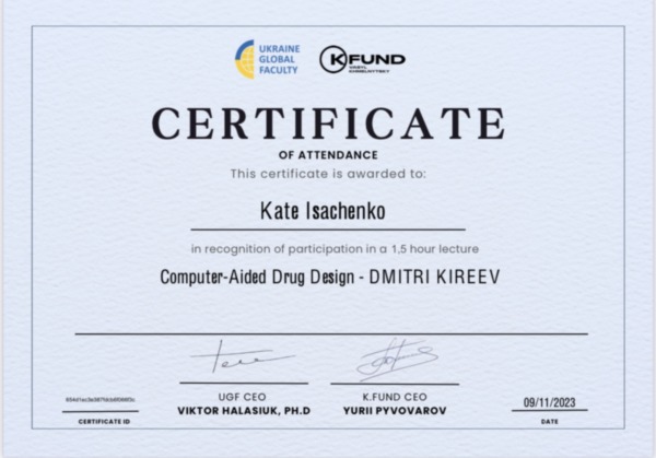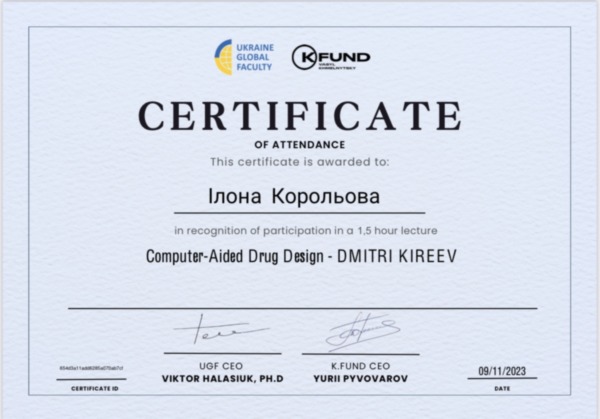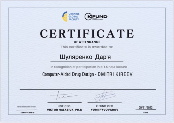 Так, вже вдруге цього року, а саме 9 листопада 2023 року, викладачі та здобувачі освіти ОП «Середня освіта (Природничі науки)» ОКР «Бакалавр» прослухали онлайн-лекцію професора кафедри хімії в Коледжі мистецтв і науки Університету Міссурі, науковця у галузі комп'ютерної біофізики та розробки ліків Dmitri Kireev – «Computer-Aided Drug Design».
