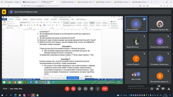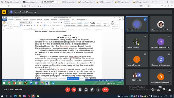 Леськів Ірина Олександрівна проходила педагогічну практику у КЗ «НВО №32 «Спеціалізована загальноосвітня школа І–ІІІ ступенів, позашкільний центр «Школа мистецтв» Кіровоградської міської ради Кіровоградської області». У ході доповіді І.О.Леськів продемонструвала позакласний захід, який провела у вигляді ігрової мандрівки Колумба «Ми готові у дорогу», представила візуальні матеріали та схарактеризувала зміст завдань позакласного заходу: