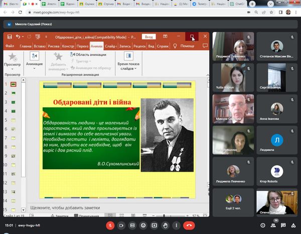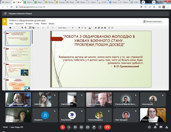 Тема засідання: «Робота з обдарованою молоддю під час воєнного стану».