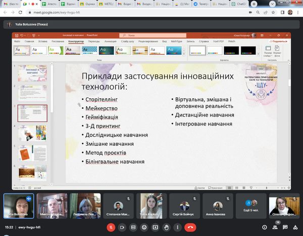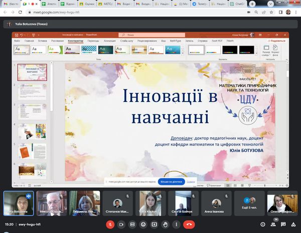 – доктор педагогічних наук, доцент, доцент кафедри Юлія Володимирівна Ботузова з доповіддю на тему: «Інновації у навчанні»;