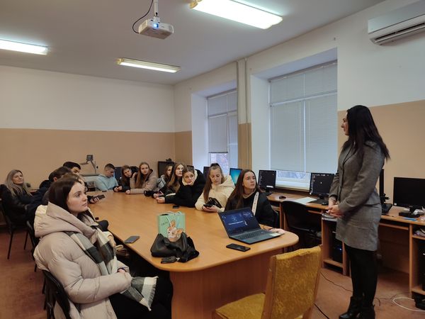 Гаранти спеціальності 112 Статистика доцент Довгенко Яня Олексіївна, доцент Халецька Зоя Петрівна та доцент Акбаш Катерина Сергіївна розповіли учням про надзвичайно перспективну і сучасну спеціальність Аналітик даних. А саме, які можливості відкриває спеціальність Статистика у сучасному цифровому світі, де величезні обсяги інформації потребують коректного аналізу та обробки. Викладачі розповіли про міжнародні, національні та регіональні бази статистичних даних та можливості їх використання, що викликало значний інтерес у школярів.