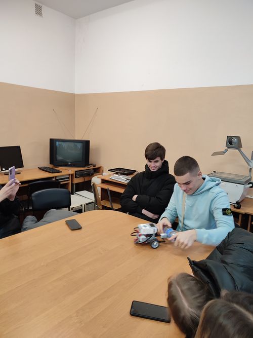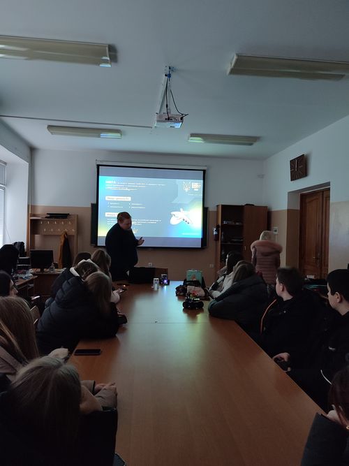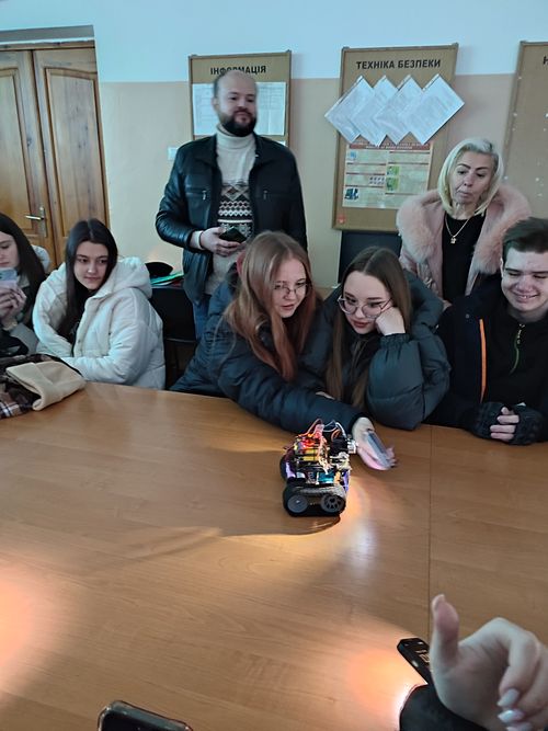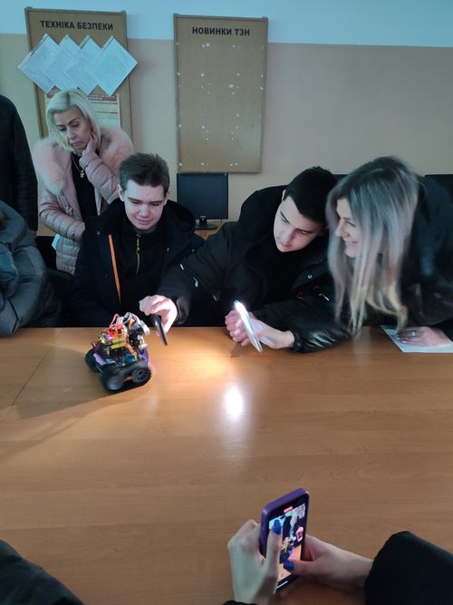 Студент групи Професійна освіта (Цифрові технології) ЦТ20Б Павлюк Денис поділився своїми знаннями в галузі цифрових технологій та надав учням унікальну можливість власноруч керувати роботами за допомогою світла. На заході, що відбувся, слухачі мали можливість допомогти пройти роботу лабіринт, використовуючи перешкоди для зміни напрямку руху робота, що для їх індикації та навігації застосовував ультразвуковий датчик відстані. Це не лише викликало зацікавленість, але і дозволило учням зануритися в захопливий світ робототехніки та експериментувати із застосуванням новітніх технологій.
