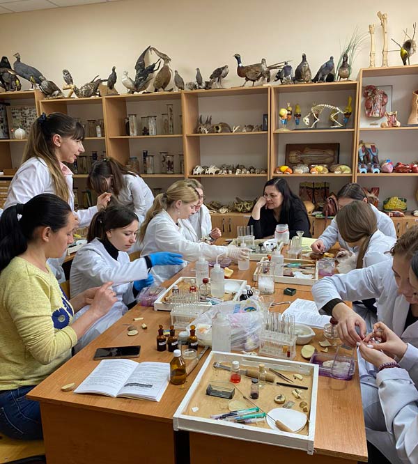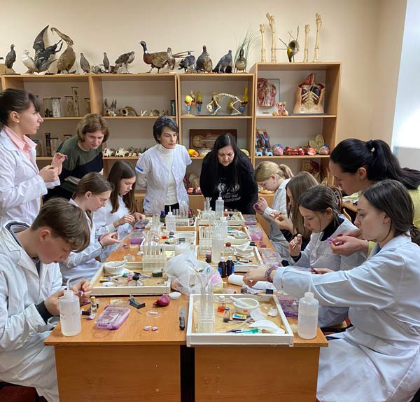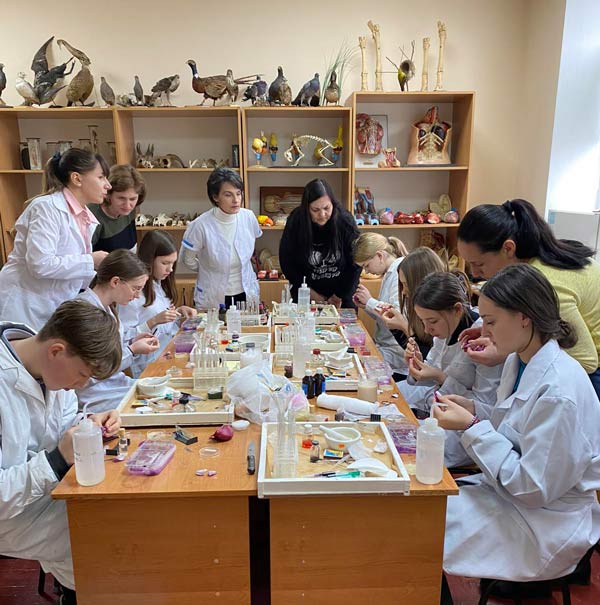 Г.Ф. Аркушина провела теоретичні заняття з учнями в дистанційному форматі, а М.С. Боброва організувала дводенний практичний тренінг на базі біологічної лабораторії кафедри, під час якого учні опанували методики препарування та мікроскопії, навчилися виготовляти і досліджувати тимчасові препарати клітин і тканин, здійснили лабораторні досліди і проаналізували отримані результати.
