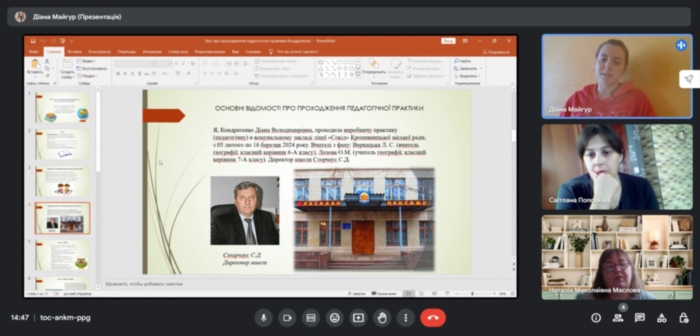 Відбулася звітна конференція з виробничої педагогічної практики у школі студентів ІV курсу спеціальності “Середня освіта (Географія)”