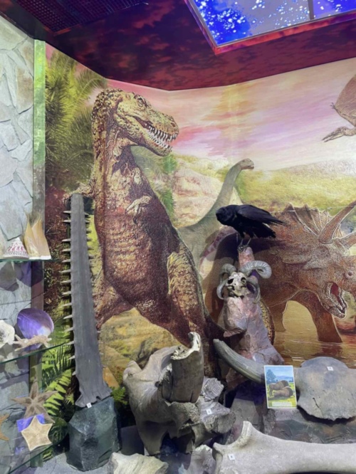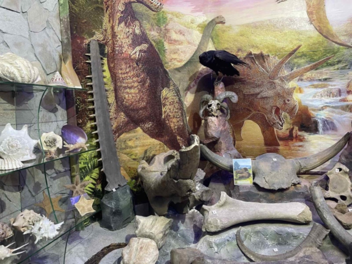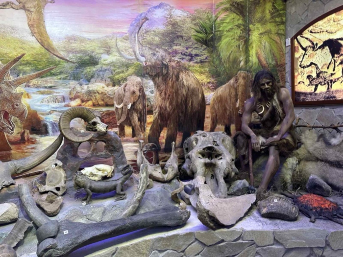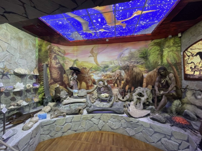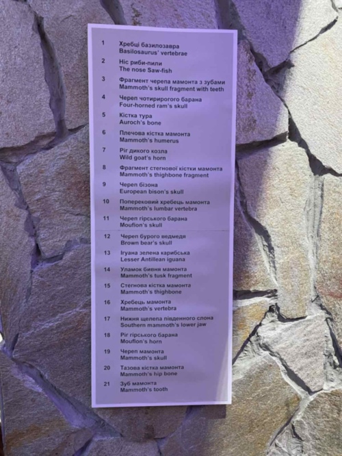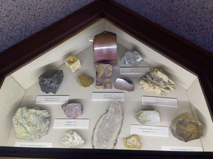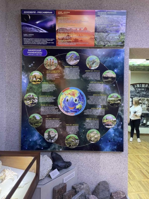 В рамках вивчення Теорії еволюції студентів цікавила експозиція, яка містила палеонтологічні експонати: хребці базилозавра, фрагмент черепа мамонта з зубами, плечова, стегнова та тазова кістки мамонта, уламок бивня мамонта та інші. Відвідувачі побачили оселю стародавньої людини (макет-діорама), колекцію викопних та сучасних порід та мінералів, колекцію мушель.