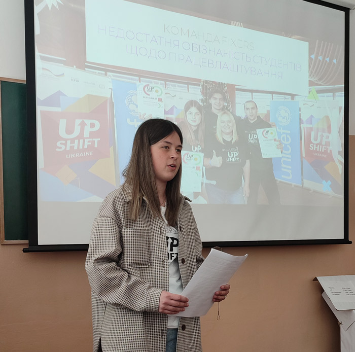 Команда "Fixers" сформована з винахідливих і креативних студентів, які розповіли присутнім про свій шлях розвитку та досягнень. Команда "Fixers" виникла завдяки їх участі у проекті UPSHIFT, де вони вирішили зосередитися на проблемі працевлаштування студентів під час навчання. Саме ця спільна мета стала основою для об'єднання трьох студентів різних курсів і спеціальностей: Іванова Кирила ЦТ21Б (спеціальність: Професійна освіта (Цифрові технології)), Стеренчука Олександра КН22Б (спеціальність Комп’ютерні науки) та Поліщук Ольги МЛА23Б (спеціальність: Менеджмент). Активно залучаються до реалізації проєкту студенти спеціальностей Професійна освіта (Цифрові технології), Середня освіта (Математика), Менеджмент, Економіка, Статистика.