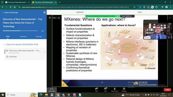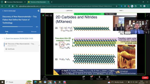 Так, 29 квітня 2024 року відвідали онлайн лекцію професора університету Дрекселя (Філадельфія, США), засновника та директора Інституту наноматеріалів Е. Дж. Дрекселя, доктора технічних наук Yury Gogotsi «Discovery of New Nanomaterials – Tiny Flakes that Define the Future of Technology».