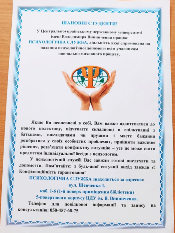 Також надано інформації стосовно розташування та графіку годин консультацій психологічної служби.