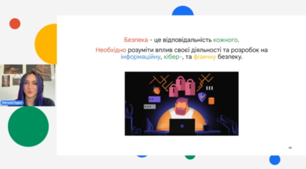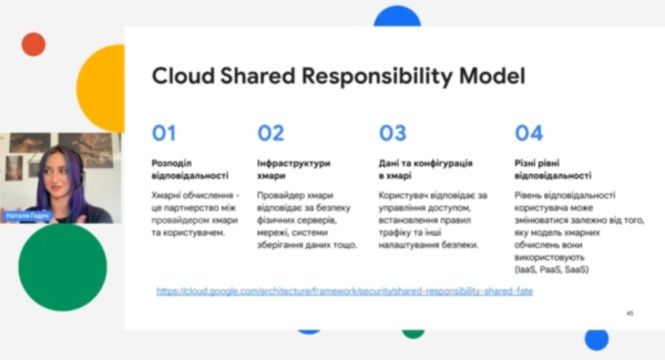 Крім того, важливим аспектом конференції була тема кібербезпеки. Студент дізнався про сучасні загрози в цифровому середовищі та про заходи безпеки, які Google Cloud впроваджує для захисту даних користувачів. Було підкреслено важливість багаторівневої системи безпеки, яка включає шифрування даних, автентифікацію та регулярний моніторинг активності.
