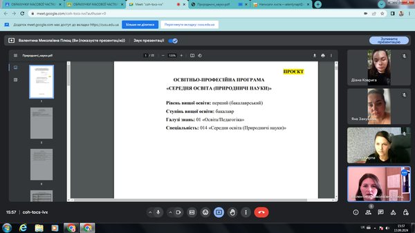 Обговорення ОП Середня освіта (Природничі науки) першого (бакалаврського) рівня вищої освіти