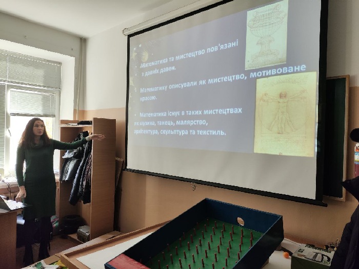 Далі Ю.В.Ботузова провела інтерактивний захід з математики, де продемонструвала зв’язок між математикою та мистецтвом. Учні мали змогу спробувати свої сили у роботі з кроссплатформеною динамічною математичною програмою GeoGebra.