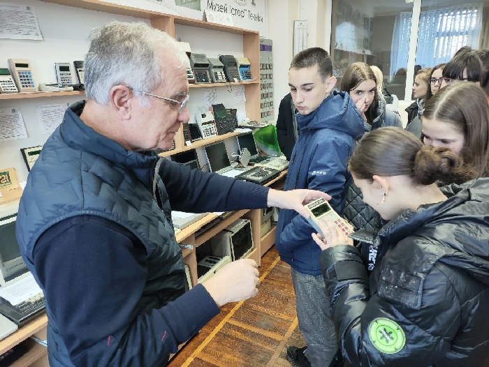 Учні на власні очі побачили еволюцію технологій – від перших механічних калькуляторів і масивних комп’ютерів до сучасних пристроїв для зберігання даних, які тепер поміщаються в кишені. Кожен експонат мав свою історію, і Р.Я.Ріжняк захоплено розповідав про вплив цих винаходів на розвиток науки та освіти.