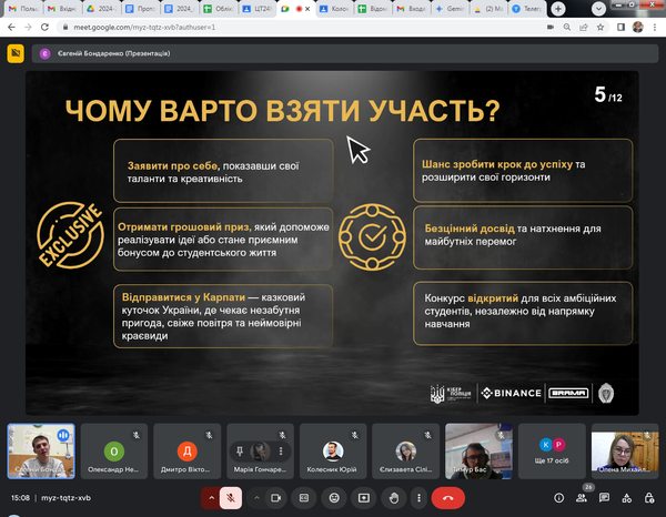 Здобувачам освіти були детально пояснені умови участі у конкурсі, етапи його проходження та винагороди, які їх чекають при подоланні кожного з етапів конкурсу.