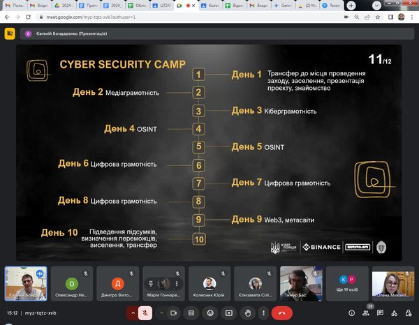 13 листопада 2024 року студенти факультету математики, природничих наук та технологій Центральноукраїнського державного університету імені Володимира Винниченка долучилися до презентації Всеукраїнського відкритого конкурсу Cyber Security Camp, яка була проведена Департаментом кіберполіції Національної поліції України.