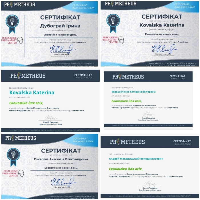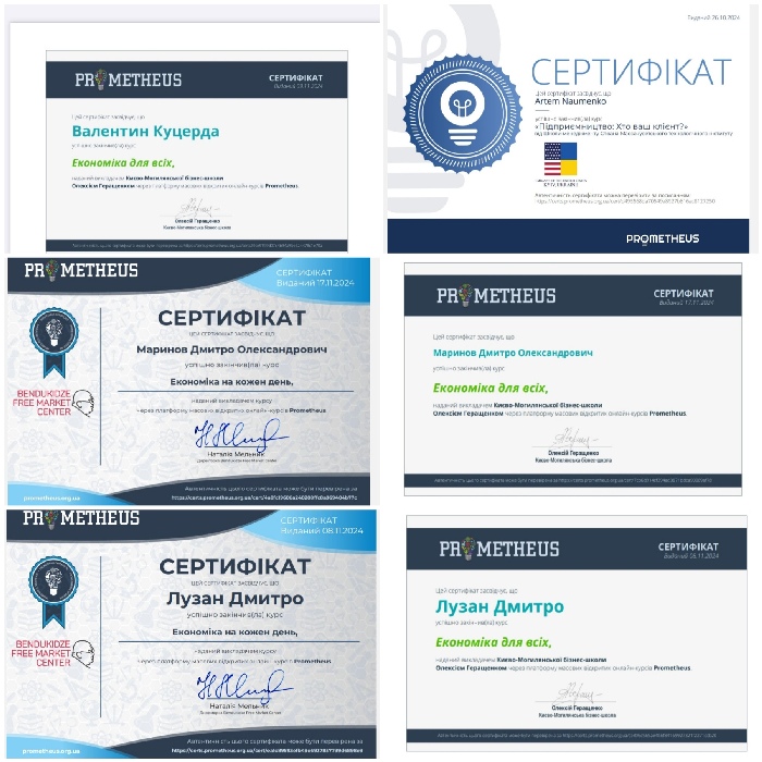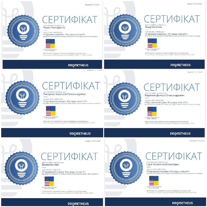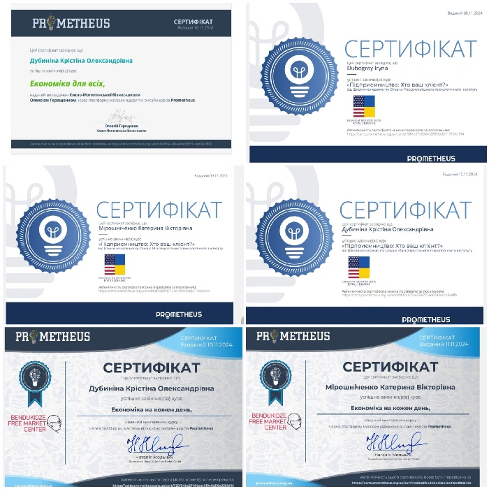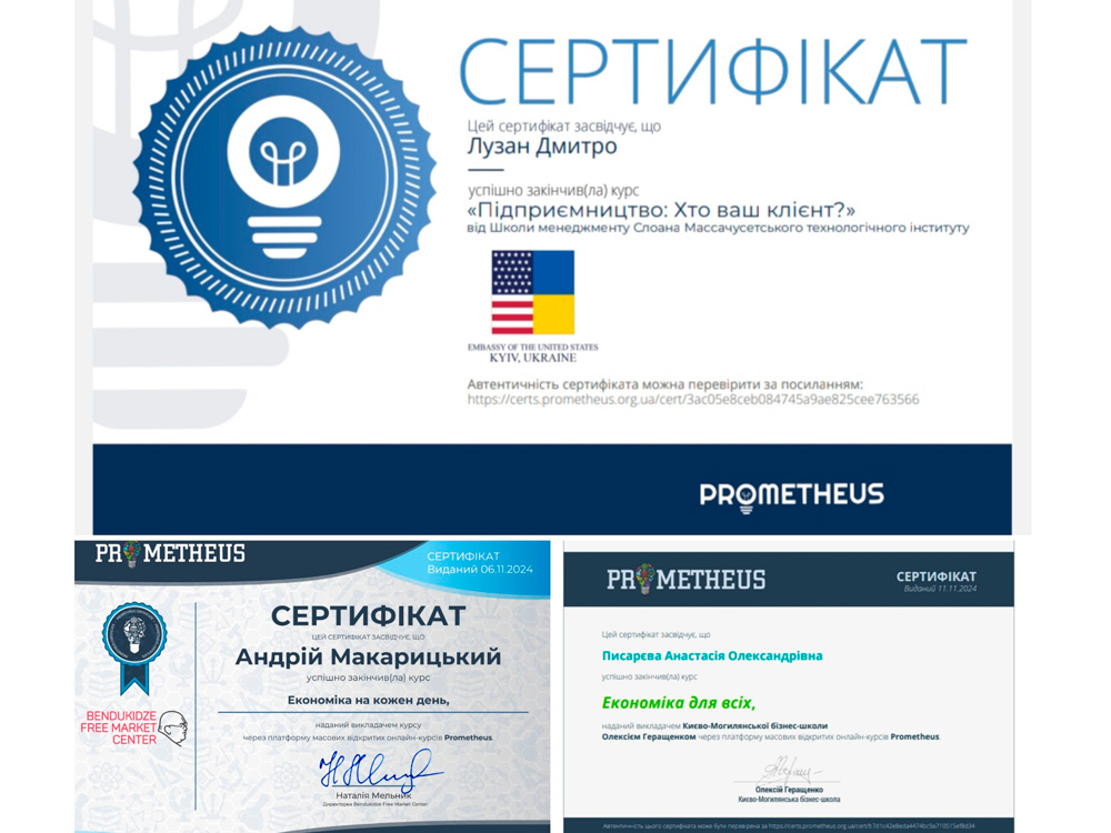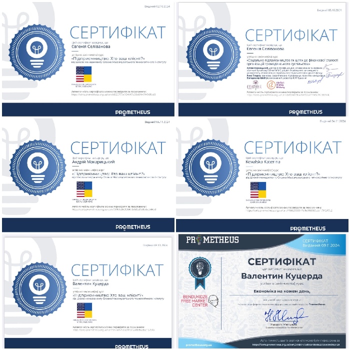 У межах цих дисциплін здобувачі першого (бакалаврського) рівня вищої освіти навчальних груп ЕК24Б та МЛ24Б в результаті проходження курсів на платформі масових відкритих онлайн курсів «Prometheus» отримали сертифікати та частково зараховані освітні компоненти.