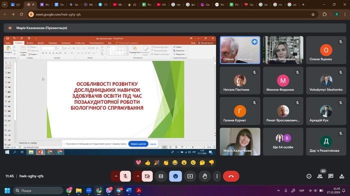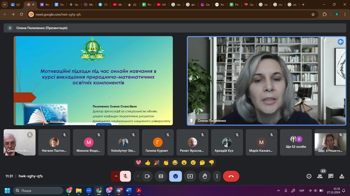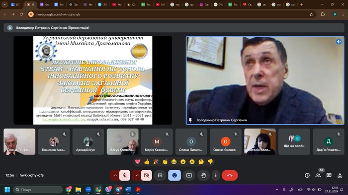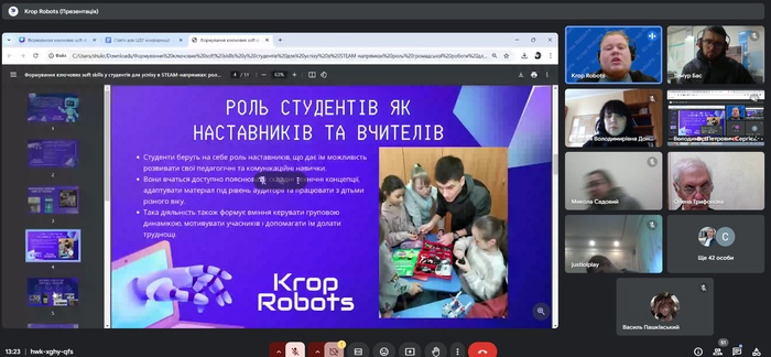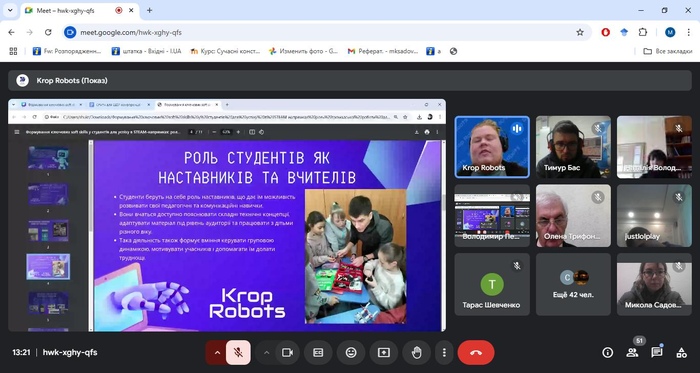 Екологічним проблемам був присвячений виступ М. Федонюка доцента кафедри екології Луцького національного технічного університету. Поділилася досвідом щодо мотиваційних підходів під час онлайн-навчання в курсі викладання природничо-математичних освітніх компонентів доцент Донецького національного медичного університету О. Пилипенко. Особливості розвитку дослідницьких навичок здобувачів освіти під час позааудиторної роботи біологічного спрямування ґрунтовно розкрила доцент кафедри природничих наук і методик їхнього навчання ЦДУ ім. В. Винниченка М. Боброва. Зацікавленість викликало повідомлення доктора педагогічних наук ЦДУ ім. В. Винниченка Ю. Ботузової щодо проблем штучного інтелекту в навчанні математики. Доцент А. Ткаченко та професор В. Гриценко з Черкаського національного університету імені Богдана Хмельницького поділилися досвідом із розвитку цифрової екосистеми університету. Доктор педагогічних наук М. Літвінова з Херсонського навчально-наукового інституту Національного університету кораблебудування імені адмірала Макарова розкрила цікаву тему – норми й відхилення штучного інтелекту в освіті. В. Сергієнко, доктор педагогічних наук, директор Навчально-наукового інституту перепідготовки та підвищення кваліфікації Українського державного університету імені Миколи Драгоманова звернув увагу присутніх на проблему наскрізного впровадження STEAM-навчання та основи інноваційного розвитку закладів загальної середньої освіти.