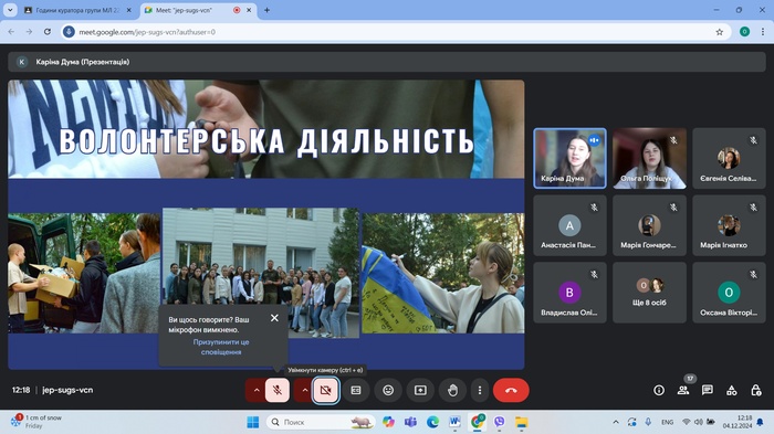 4 грудня 2024 року відбулася зустріч студентів груп ЕК24Б, ЕК23Б, ЕК22Б спеціальності 051 Економіка (Освітня програма економічна безпека) кафедри менеджменту та підприємництва ЦДУ ім. В. Винниченка з представниками органів студентського самоврядування. Перед студентами виступали та презентували основні завдання студентського самоврядування голова студентської ради факультету математики, природничих наук та технологій Ольга Поліщук та член студентської ради Каріна Дума, які є здобувачками освіти за напрямками 073 Менеджмент та 051 Економіка.