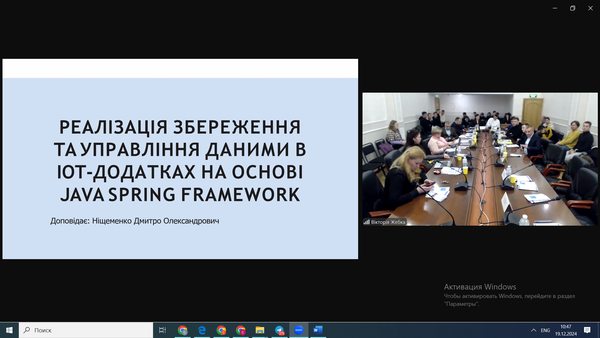 Представниками кафедри стали: доцент Присяжнюк О.В. та доцент Пузікова А.В. (використання ChatGPT для розпізнавання відповідей респондентів у соціальних опитуваннях), доцент Шлянчак С.О. (ізоморфізм графів та розв’язок проблеми за допомогою нейронних мереж), викладач Ганенко Л.Д. (застосування ROS для розробки робототехнічних систем), які долучилися онлайн, та викладач Ніщеменко Д.О., який очно виступив на конференції. Ніщеменко Д.О. презентував результати свого дослідження щодо реалізації механізмів зберігання та управління даними в Інтернеті речей на базі фреймворку JAVA SPRING.