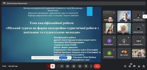 26 грудня відбувся захист кваліфікаційних робіт та кваліфікаційний екзамен з фаху магістрів, які навчаються за освітньою програмою “Середня освіта (Географія) та краєзнавчо-туристична робота”. Кваліфікаційні роботи мали різноманітну тематику та стосувалися актуальних питань сучасної методики навчання географії, географічної науки та краєзнавчо-туристичної роботи в школі.