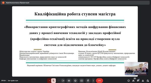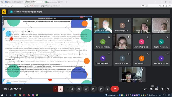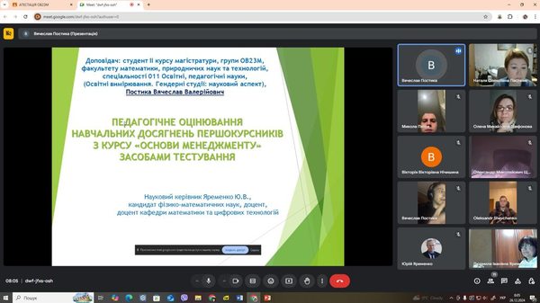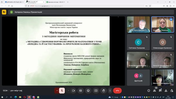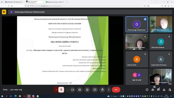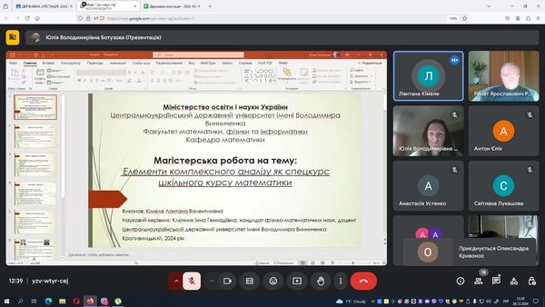 На кафедрі математики та цифрових технологій факультету математики, природничих наук та технологій ЦДУ імені Володимира Винниченка у період з 19 грудня 2024 року по 27 грудня 2024 року відбулася атестація магістрантів спеціальностей: