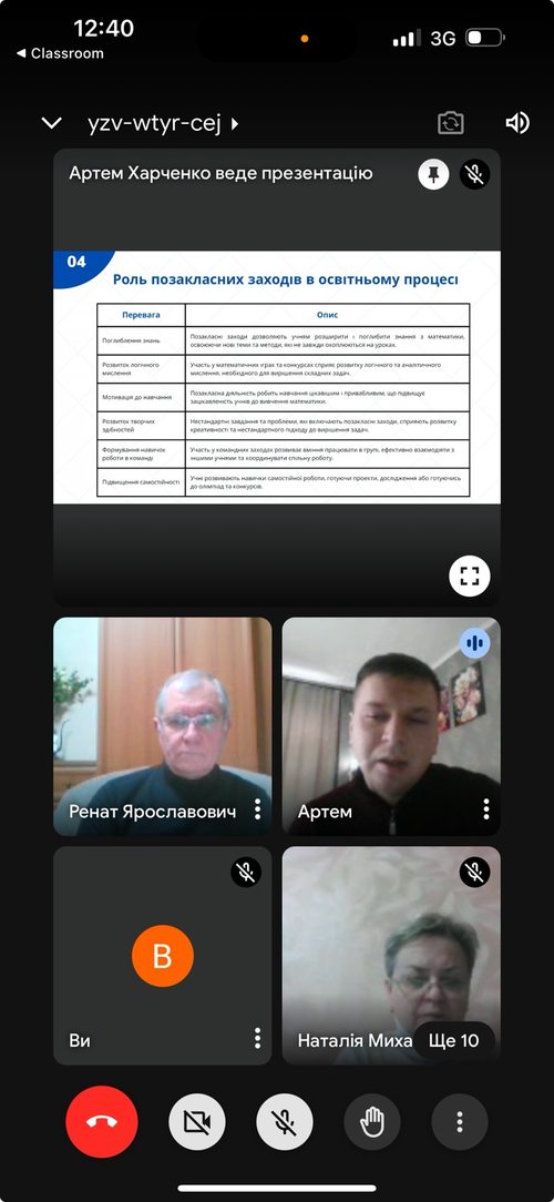 Головою екзаменаційної комісії з атестації студентів групи МІЕ23М (спеціальність 014 Середня освіта (Математика)) був доктор історичних наук, професор кафедри математики та цифрових технологій Ренат Ярославович Ріжняк. Кваліфікаційний екзамен та захист кваліфікаційних робіт відбулися 20 грудня 2024 року та 26 грудня 2024 року відповідно. Студенти-випускники продемонстрували високий рівень знань з Методик навчання інформатики та економіки в старшій школі і Практикуму розв’язування задач з елементарної математики та інформатики. Також під час захисту кваліфікаційних робіт з Методики навчання математики магістранти продемонстрували високий рівень своїх наукових та дослідницьких умінь. Члени екзаменаційної комісії у складі Р.Я. Ріжняка, Ю.В. Ботузової, Н.О. Пасічник, Н.М. Войналович, І.В. Лупан, В.В. Нічишиної висловили задоволення тематикою наукових робіт студентів і результатами атестації та побажали випускникам подальшого професійного зростання.