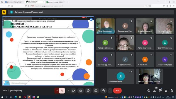 Атестація в групі ОВ23М (спеціальність 011 Освітні, педагогічні науки, Освітня програма: Освітні, педагогічні науки (Освітні вимірювання. Гендерні студії: науковий аспект) проходила у такі терміни – 19 грудня 2024 року відбувся кваліфікаційний екзамен з дисциплін професійної підготовки. Екзаменаційна комісія у складі доктора історичних наук, професора Наталії Олексіївни Пасічник – голови комісії, професора Р.Я. Ріжняка, доцентів В.В. Нічишиної, Л.І. Яременко – членів комісії, заслухали відповіді студентів та виставили наступні оцінки: два студенти отримали оцінку «добре», один студент – оцінку «задовільно».