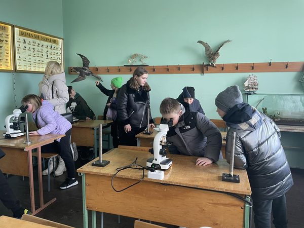 Не менш цікавою виявилася екскурсія до біологічної лабораторії. Тут гості мали змогу побачити, як під мікроскопом виглядає серце людини, кров, кістки, м’язи та навіть мозок. Вони з захопленням спостерігали за мікроскопічними об’єктами, які раніше бачили лише на сторінках підручників.