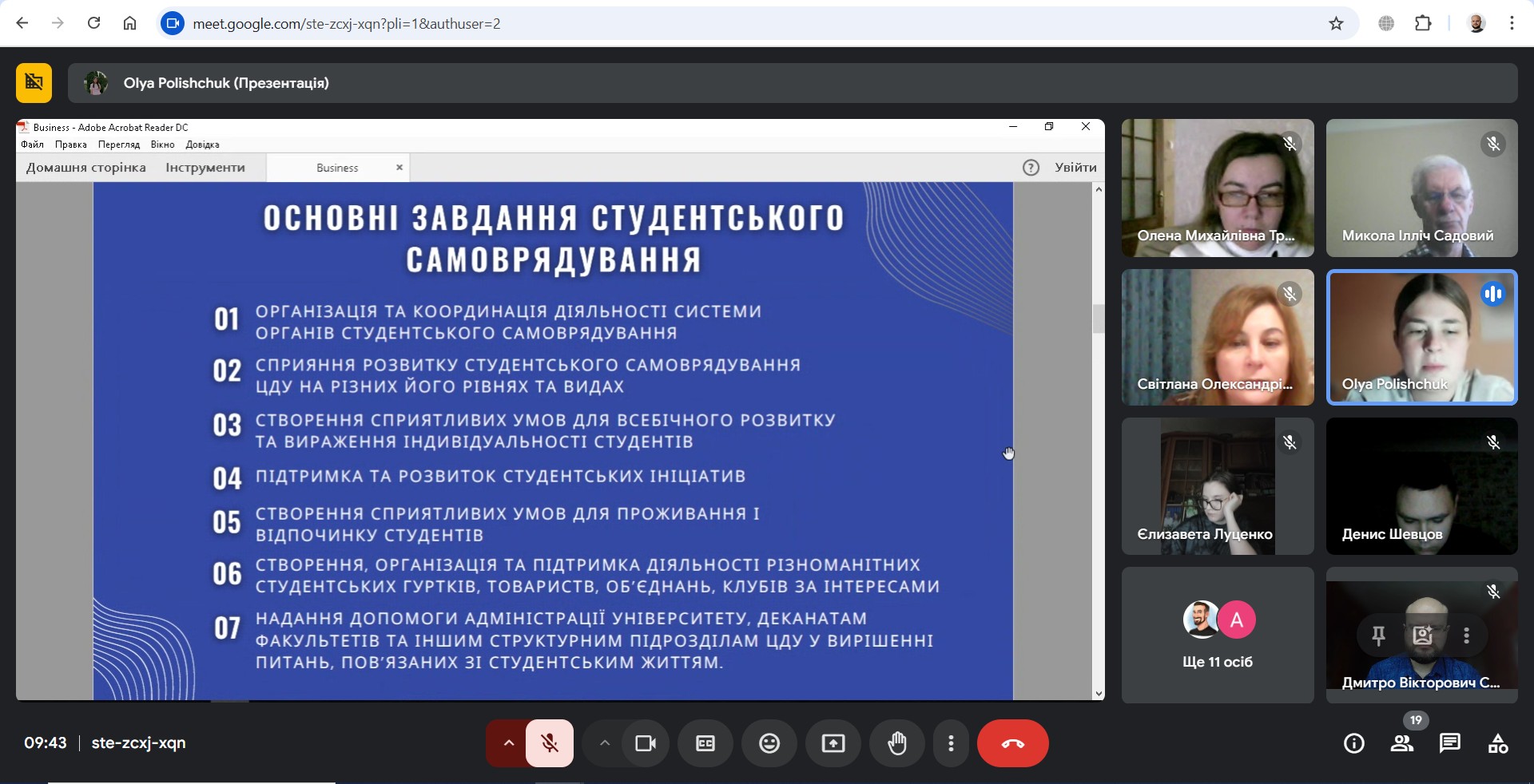 На завершення зустрічі Поліщук Ольга підкреслила: "Студентська рада – це не лише орган самоврядування, а й потужний інструмент розвитку молоді, їхньої ініціативності, лідерських якостей. Ми відкриті для всіх, хто готовий діяти та змінювати світ навколо себе."