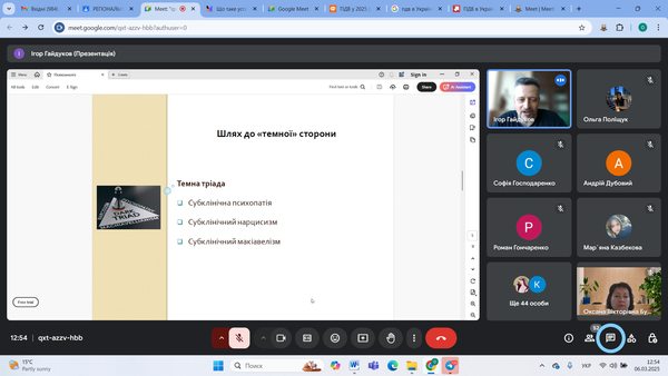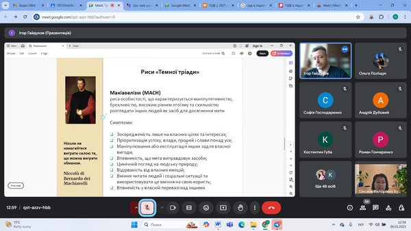 Гостьова лекція стейкхолдера кафедри менеджменту та підприємництва ЦДУ ім. В. Винниченка Ігоря Гайдукова на тему «Вплив рис конструкта «Темна тріада» на прагнення до успіху»