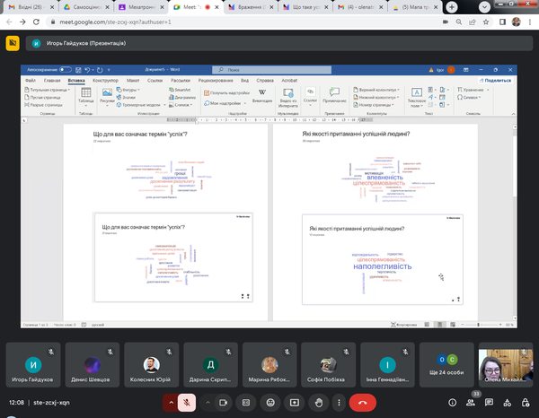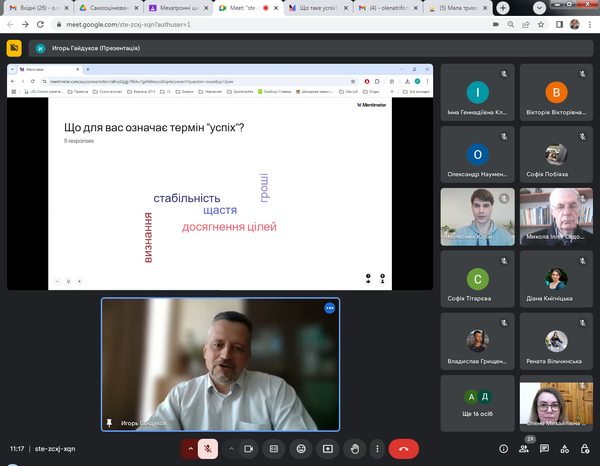 Учасники заходу обговорили поняття успіху (Britannica Dictionary): факт отримання або досягнення багатства, поваги чи слави; правильний або бажаний результат спроби; хтось або щось, що є успішним: людина або річ, яка досягає успіху.