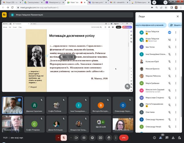 20 березня 2025 року студенти спеціальностей Середня освіта (Математика) та Професійна освіта (Цифрові технології) долучилися до гостьової лекції на тему: «Вплив рис конструкта «Темна тріада» на прагнення до успіху».